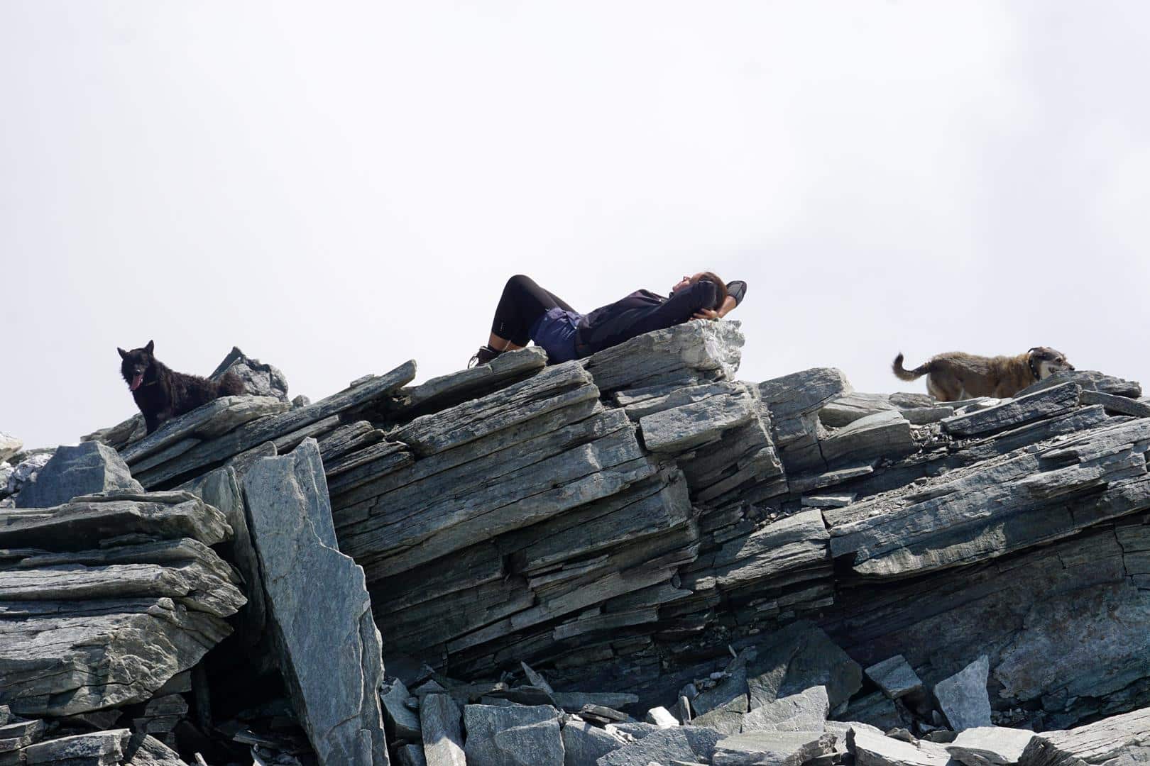 Wer mit seinem gehorsamen Hund schon Bergtouren in hochalpinen Lagen gemacht hat, wird seinen geliebten Freund auch mit auf den Gipfel des Ankogels nehmen können. Ich selbst war überrascht, wie unkompliziert diese Bergtour mit zwei Hunden war. Wir hatten uns im Vorfeld ausgerechnet, dass immer eine mit den Hunden am Kleinen Ankogel wartet und wir den Gipfel getrennt besteigen würden. Als wir am Kleinen Ankogel den weiteren Weg begutachteten, waren wir uns sofort einig: Auf den ersten Blick gab es keine Stellen, die uns ein mulmiges Gefühl machten. Wir wollten es versuchen soweit es zusammen ging. Es ging geradewegs bis zum Gipfel.