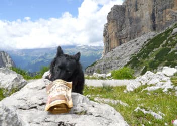 Wer mit Hund auf Mehrtagestour geht, braucht nicht nur einen fitten und gut versorgten Begleiter, sondern stellt sich auch zwangsläufig die Frage, wie das Hundefutter zu den Unterkünften kommt. Die Antwort: auf dem Rücken von Herrchen oder Frauchen. Damit das möglich ist, braucht es ein Trockenfutter, das ein gutes Verhältnis von Energie zu Gewicht hat. Für Touren bis zu 10 Tage nutzen wir das Trockenfutter von Carnilove. Trotz dass Greta gern mal eine Mahlzeit aussetzt, baut sie mit dem Futter nicht groß ab und es ist leicht. Wir brauchen davon 110 Gramm pro Tag bei Greta’s 15 kg, macht 1,1 Kilo bei einer 10-Tages-Tour. Perfekt!