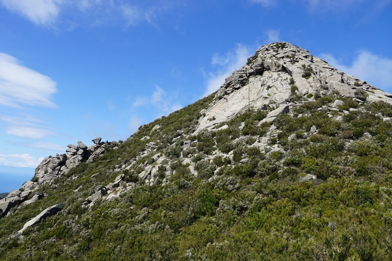 Vom Start Procchio (7) nehme ich Kurs auf die höchsten Gipfel der Insel: Monte Perone (8), 630 m, Monte Marlo (9), 750 m und den höchsten Punkt von Elba, dem Monte Capanne mit 1019 Metern. Letzterer bleibt mir aber verweht, obwohl ich sehnsüchtig auf den versicherten Aufstieg blicke. Der Gipfel ist nur ein paar Höhenmeter entfernt und ich bin ziemlich traurig, als ich weiterziehe. Noch trauriger wäre ich aber gewesen, wenn ich meinen Bus verpasst hätte und dreinhalb Stunden auf den nächsten hätte warten müssen.
