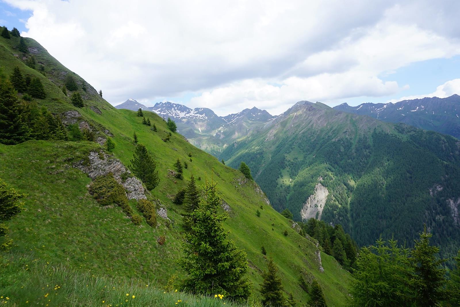 Ich muss zugeben, diese erste Etappe hat mich nach der Corona-bedingten Bergpause konditionell ziemlich nah an meine Grenzen gebracht. Diese 1400 Höhenmeter auf steilen Pfaden haben mich mächtig aus der Puste gebracht. Ok, für mich Flachländer war auch die Luft ein bisschen dünn. Aber da ich auf der anderen Seite die hohen Berge so vermisst habe, haben mich allein die Aussichten über diesen Tag getragen. Vor allem von den großen Zillertaler Gletschergipfel im Norden, konnte ich kaum den Blick abwenden.