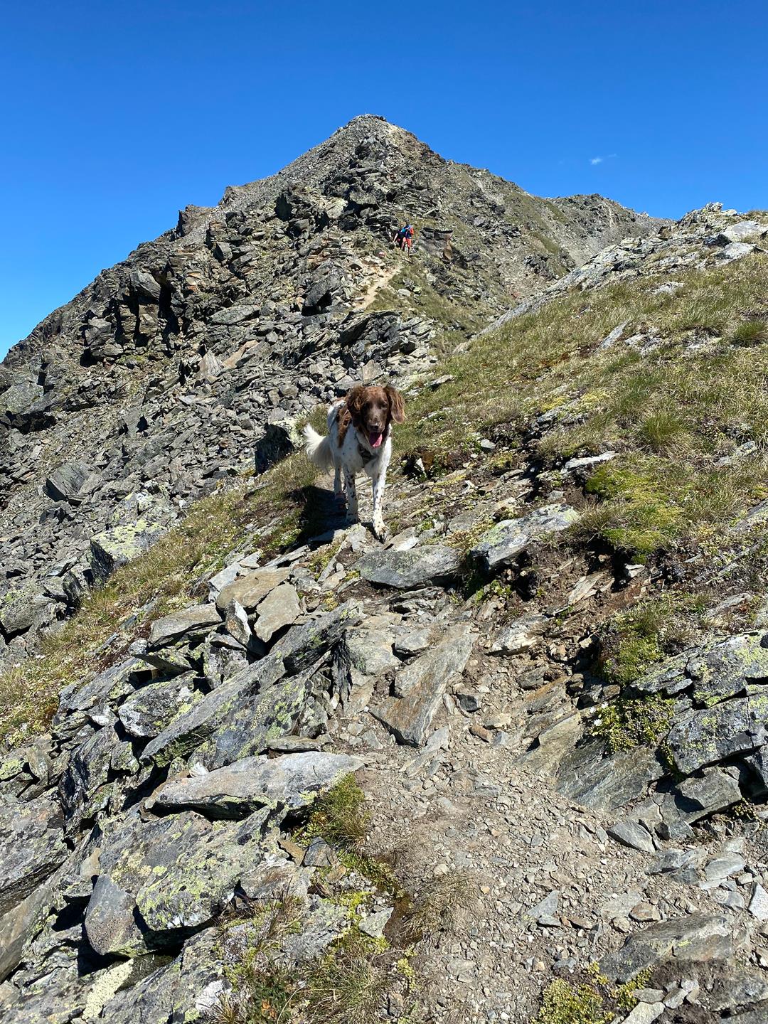 Auch wenn meine taffe Senioren-Hündin Lotte diese Tour noch im stolzen Alter von 13 Jahren gemeistert hat – diese Hüttentour ist definitiv nicht für jedes fellige Exemplar geeignet. Lotte konnte für die schwierigen Stellen nämlich nicht nur auf einen unglaublichen Erfahrungsschatz zurückgreifen, sondern verfügte trotz des Alters über eine hervorragende Kondition und Trittsicherheit. Darüber hinaus waren wir beide als Team so derart gut eingespielt, wie man es eben nur nach zehntausenden gemeinsamen Höhenmetern sein kann.