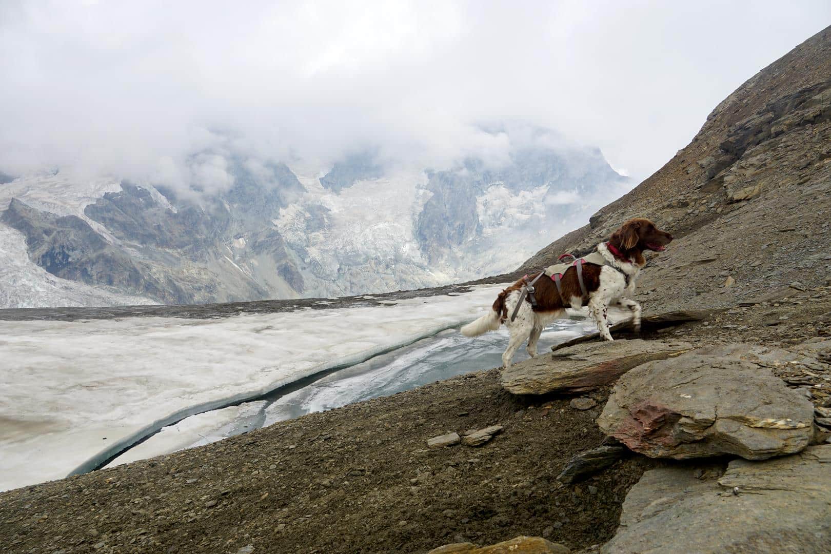 Selten gibt es 3000er, die so einfach auch mit Hund zu besteigen sind. Das Fehlen jeglicher Kletterpassagen, macht es für den Hund einfach, die Gipfel des Mettelhorn und Platthorn zu erreichen. Für meine Lotte, ihres Zeichens der beste Wanderhund der Welt, war die Besteigung des Mettelhorns der höchste Berg ihres Lebens. In Anbetracht ihrer stolzen 13 Jahre ist es kaum vorstellbar, dass ein anderer Berg dies noch toppt. Für Lotte war der Aufstieg vom Berggasthaus Trift tatsächlich ein Spaziergang, denn die Wege hinauf waren für unsere Verhältnisse sehr gut wanderbar und Lotte brauchte keine Hilfe. Auch über den Gletscher marschierte sie ohne Probleme vorweg. Beim Platthorn ließ ich sie ein paar Höhenmeter unterhalb des Gipfels warten, da dieser etwas schroff und unbequem war.