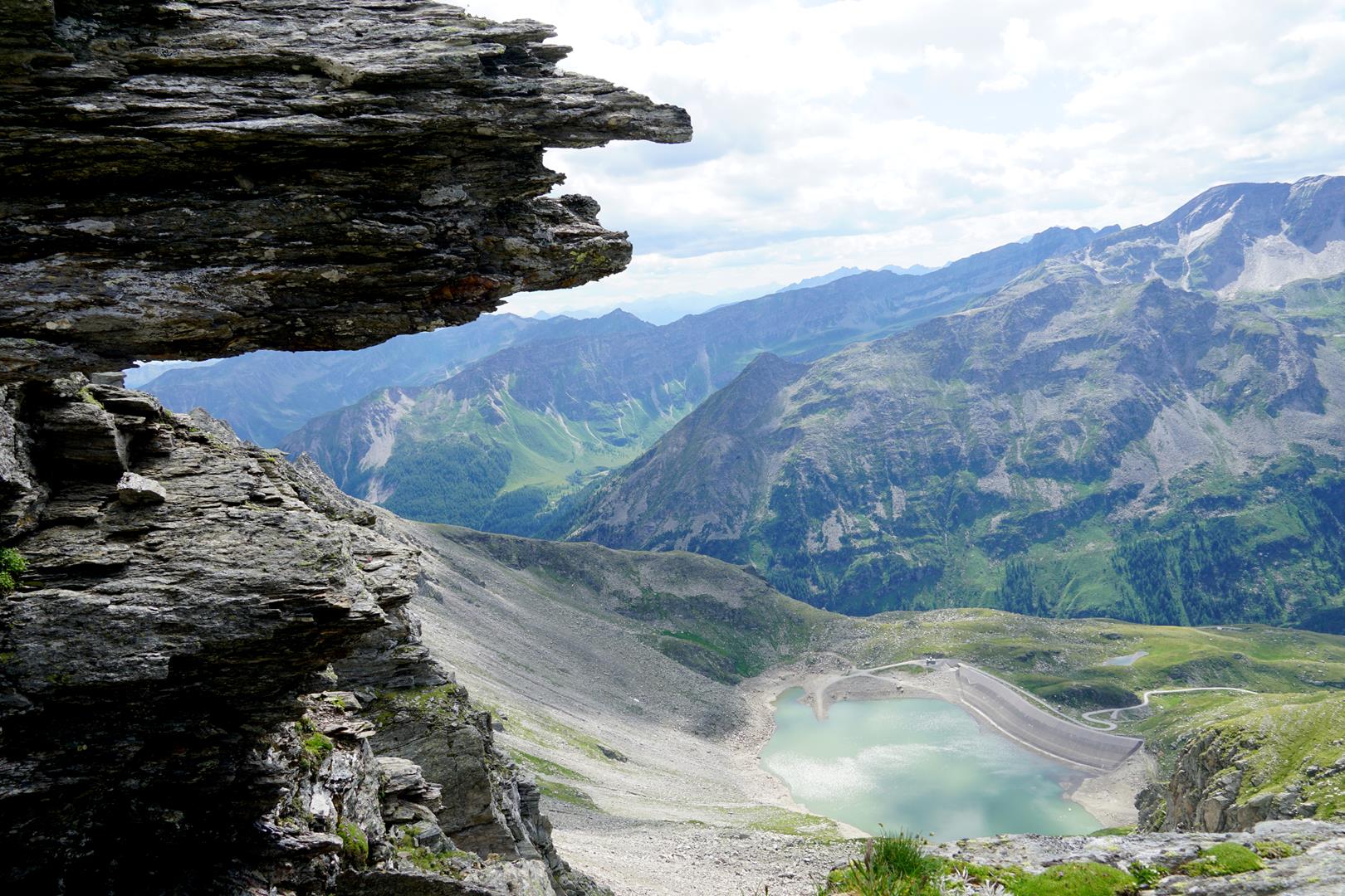 Wir können das Hannoverhaus, das vor dem Ankogel auf einem Kamm thront von unserem Pausenplatz erkennen, aber auch hier wird es zwei bis drei Stunden dauern, bis wir es erreichen können. Wir steigen weiter durch steiniges Gelände ab, kurz nach einem kleinen See hat man die Möglichkeit zur Mittelstation der Ankogelbahn abzusteigen und dieses Trekking zu beenden. Was wir in diesem Fall auch taten. Ich hänge hier aber eine Etappe dran, die ich vor zwei Jahren gelaufen bin. Also geht es auf dem ausgeschilderten Weg weiter Richtung Hannoverhaus, über das Luggetörl (3) und später auch wieder bergan, allerdings in einfacherem Gelände. Der Tauernhöhenweg führt uns direkt zum Hannoverhaus (4).