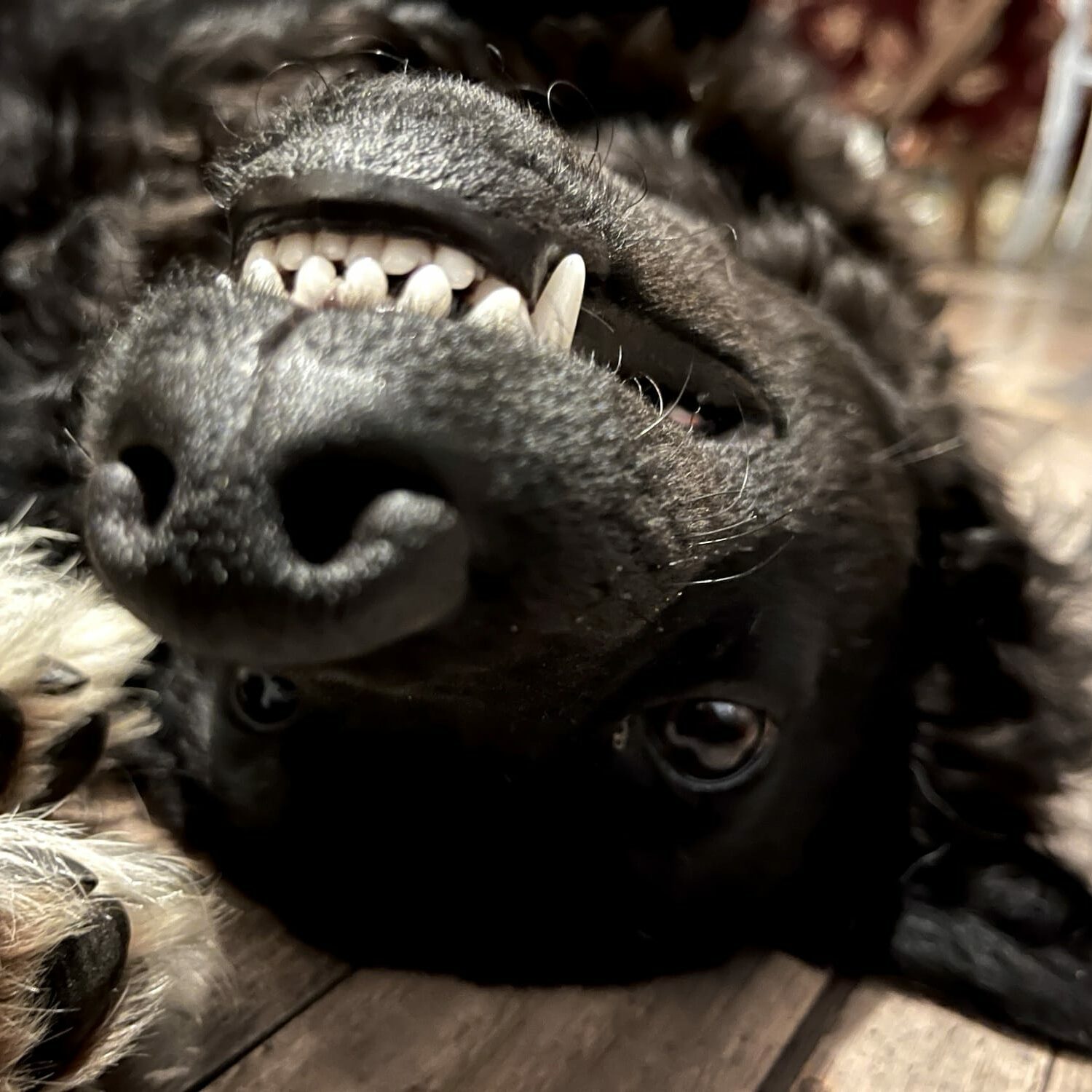 Anderseits habe ich auch noch nie einen Hund getroffen, der neben dem Bellen so unglaublich kreativ bei anderen Lautäußerungen sein kann. Greta seufzt wie ein Mensch, kann zustimmend „mhmh“ machen und knurrt beim Spielen wie ein Terrier. Und: Sie grunzt vor Freude. Das ist wirklich witzig.