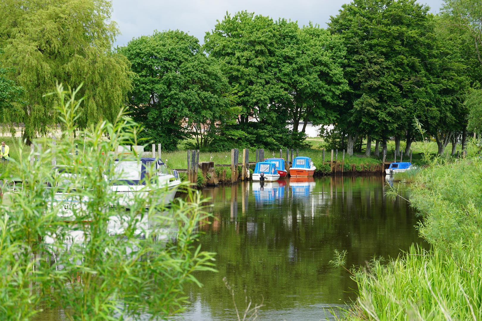 Ich selbst bin nur im Westen Dänemarks den Kyst til Kyst stien gewandert. Besonders gefallen haben mir die weichen Wiesenwege, die mich an der Holme Å entlanggeführt haben. Mittendrin dann diese farbenfrohen Kutter und überall Nutztiere auf weitläufigen Weiden – vom Husumer Protestschwein bis zu Highland-Rindern. Der Weg führt aber zwischendurch in ländliches Gebiet und wird auch mal etwas eintönig, auch wenn die niedliche Gehöfte durchaus eine Augenwaide sind. Nachdem man diese Strecken im Pilgermodus, dieser meditative Zustand wo man ganz gleichmäßig einen Fuß vor den anderen setzt, gemeistert hat, ist ganz sicher das nächste Naturhighlight nicht weit.