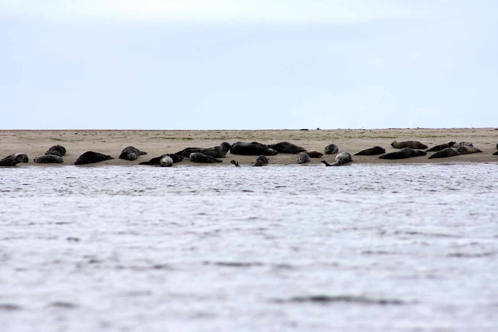 Fanø liegt inmitten des Nationalparks Wattenmeer und wird von den typischen Wattlandschaften geprägt: Hier der ausgedehnte Strand, dort das Wattenmeer, da die Dünen, dahinter Moorlandschaften aus denen Wollgras sprießt und später ausgedehnte Heidelandschaft, zwischendrin noch ein bisschen Wald – landschaftlich ist die Insel wirklich vielseitig. Wir hatten bei unserer Wanderung zudem Glück mit den Gezeiten und konnten westlich von Sønderho einen Abstecher durch das Watt machen und bis zu einem Priel laufen. Auf der anderen Seite lagen Robben zu Hauf. Bis auf ein paar schwimmende Vertreter war das zwar kein Spektakel, aber dennoch unvergesslich. Auf Fanø gibt es übrigens sowohl Kegelrobben als auch Seehunde.