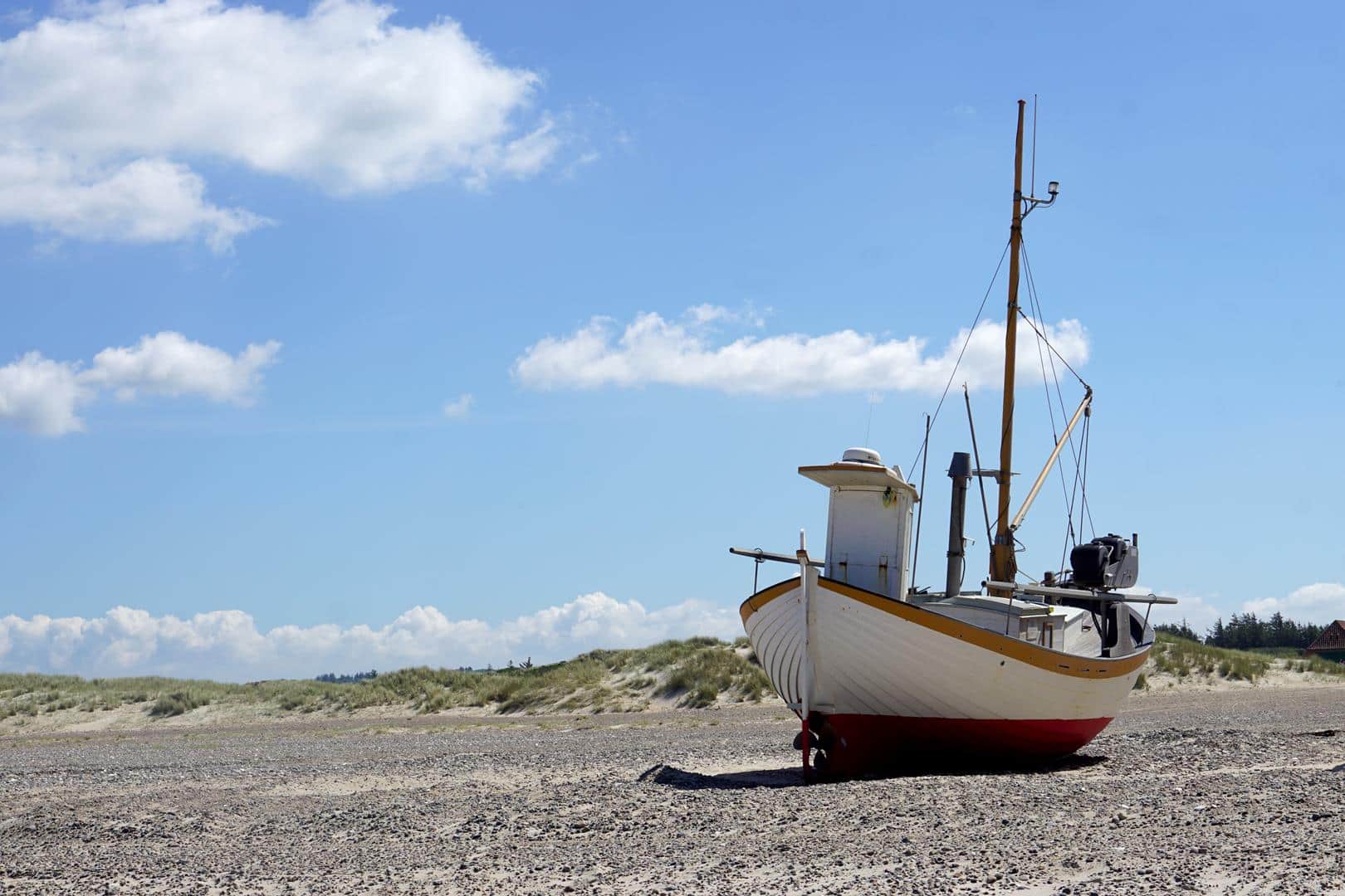 Der Nordseewanderweg (Nordsøstien) ist eigentlich 6000 Kilometer lang und führt durch verschiedene Länder. In Dänemark führt der Fernwanderweg von der deutsch-dänischen Grenze entlang der Westküste bis nach Skagen, wirklich gut in Schuss ist er jedoch nur im Norden von Agger bis Skagen. Von Agger bis Bulbjerg ist er identisch mit dem Vestkyststien (Westküstenweg), ein etwa 90 Kilometer langer Weitwanderweg, der meist den alten Rettungswegen am Strand folgt. Der Nordseewanderweg macht seinem Namen alle Ehre, verläuft überwiegend an der herrlichen Westküste, zieht aber auch immer wieder mal für kurze Passagen ins Landesinnere. Langweilig wird der extralange Strandspaziergang aber nicht, denn er bringt uns zum einzigen Felsen in Jütland (Bulbjerg), zu Nordeuropas größtem Küstenlandeplatz (Thorupstrand) wo wir Fischkutter gucken können und zu zahlreichen niedlichen Fischerorten, wie Klitmøller, das auch liebevoll Cold Hawaii genannt wird.