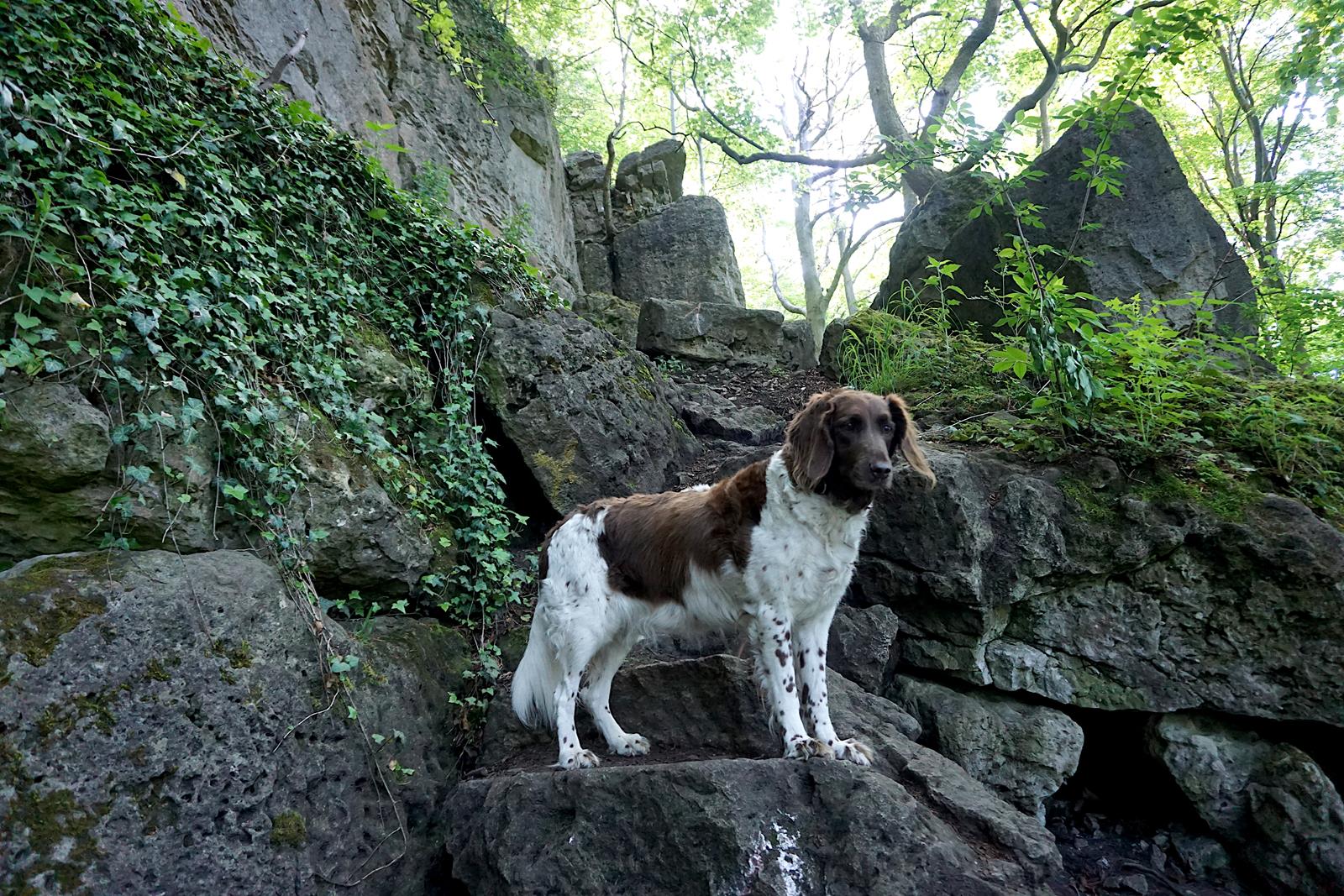 Was soll ich sagen: Pack die Hundekekse ein! Dein vierbeiniger Freund darf auf dieser Tour definitiv nicht fehlen. Wanderhund Lotte zumindest war ebenso schwer begeistert wie ich von diesem Weg. Sie ist einfach ein Berghund und die vielen Felsen haben ihr ausgesprochen gut gefallen. Ich glaube, wenn jemand alle Felsen und Klippen im Ith-Hils erklommen hat, dann Lotte. Als ich schon nur noch an den vielen Klippen vorbeigegangen bin, ist sie wirklich auf jede Kippe und jeden Stein geklettert, nur um die Aussicht zu prüfen.