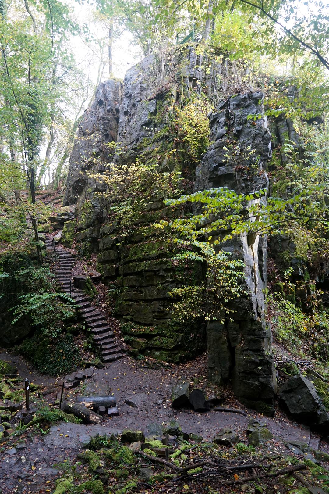 Als klassische Wanderung im Mittelgebirge braucht man nicht mit besonderen Herausforderungen rechnen. Allerdings sind es eben dann doch ein paar Höhenmeter, die in Form steiler Anstiege und vielen stufigen Wegen die Waden ganz schön strapazieren. Auch einige Eisentreppen und sehr enge und dunkle Schluchten mögen in dem ein oder anderen Unbehagen auslösen. Die meisten dieser Stellen lassen sich aber auch umgehen. Wer sich bei dieser Tour an meiner Aufteilung orientiert, sollte eine ordentliche Kondition mitbringen. Da die Wege vor allem nach Regen glitschig und rutschig sein können, ist ordentliches Schuhwerk sinnvoll.