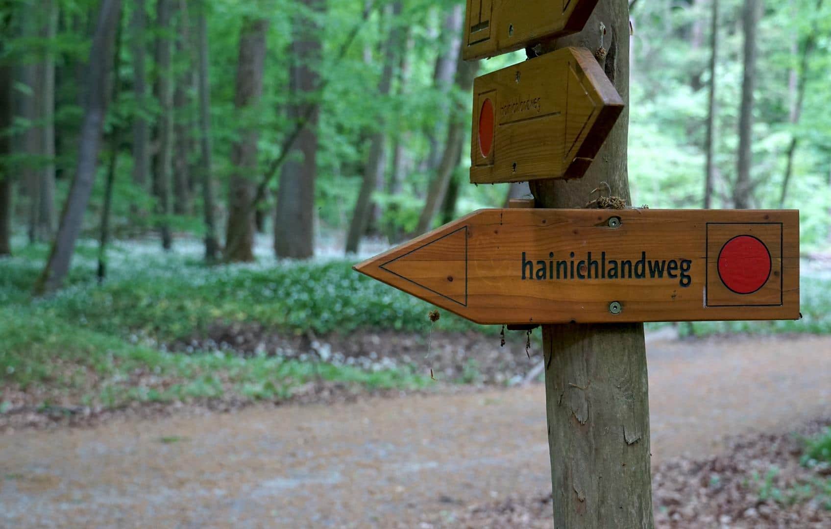 Einen Teil des Weges – hauptsächlich den Teil in der Kernzone – bin ich im Frühjahr gewandert. Neben dem einzigartigen Naturerlebnis, hat mich vor allem der Wegverlauf in seinen Bann gezogen. Ich wanderte mal durch einen noch sehr jungen Laubwald, gerade einmal 22 Jahre alt. Im Verlauf wurden die Bäume immer dicker und höher und die alten Baumriesen quietschen und knarren – manchmal gar ein wenig unheimlich. Später führt mich der Hainichlandweg auf eine Wiesenfläche, die sich beim genaueren Hinschauen als Wald der Zukunft entpuppt. Denn mittendrin erwachen kleine Bäumchen zum Leben. Das alles darf ich auf guten Wanderwegen und ziemlich einsam genießen.