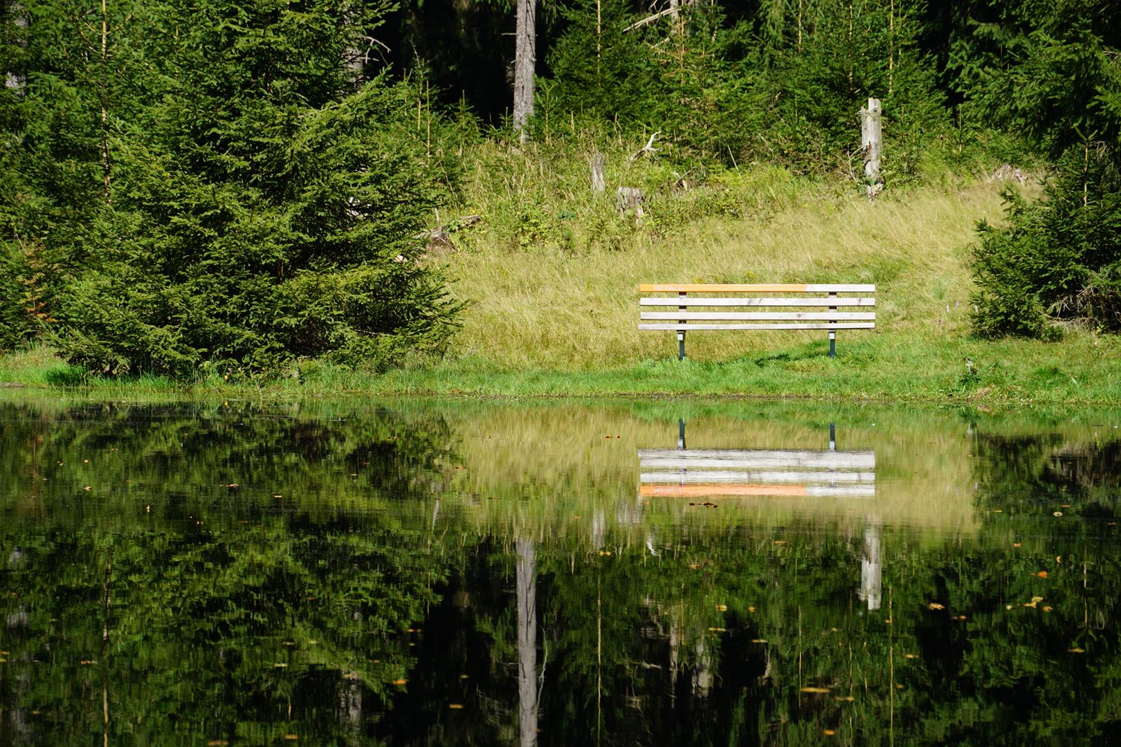 Wie viele Pausen passen in 15 Kilometer? Viele. Sehr viele. Dem Panoramaweg „Dr. Wald Weg“ mögen die spektakulären Höhepunkte fehlen und hin und wieder führt er auch über breitere Wirtschaftswege, aber ich bin in letzter Zeit selten durch einen so schönen, vitalen Wald gewandert. Saftig grünes Moos hier, kleine wilde Bäche dort, da drüben ein Teich – so macht Wald Spaß. Die liebevoll angelegten Pausenplätze sind das Sahnehäubchen der Tour, fast jeder lädt zum Verweilen ein. Da braucht es auch keine spektakulären Aussichten (auch wenn es herrliche Weitblicke gibt). Eine perfekte Wanderung, um die Akkus wieder aufzuladen.