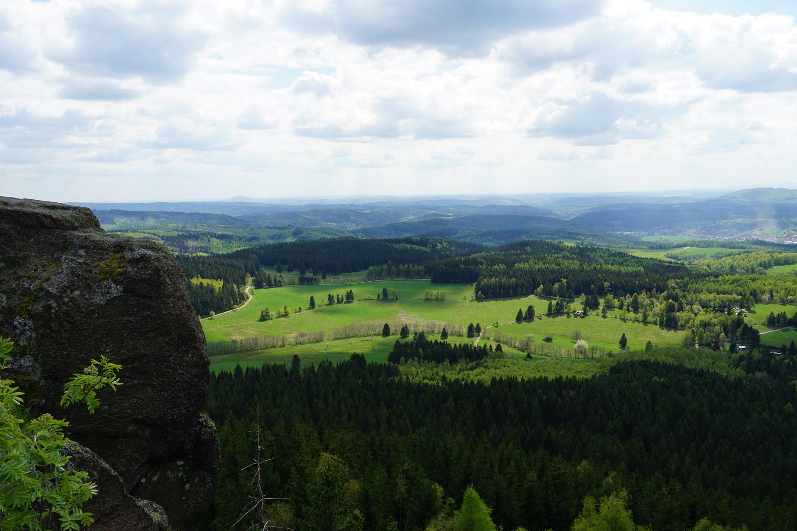 Der Obere Hermannbergstein gehört ebenfalls zu den markanten Aussichtsfelsen im Thüringer Wald, dessen Gipfel auf 867 Metern Höhe liegt. Neben einer kleinen Klettereinlage die letzten Meter hinauf auf den Gipfel, ist es vor allem die Aussicht in die Rhön, die mir besonders gefallen hat. Der Aufstieg zum Aussichtsfelsen wird durch in den Felsen gehauene Stufen und ein Sicherungsseil unterstützt.